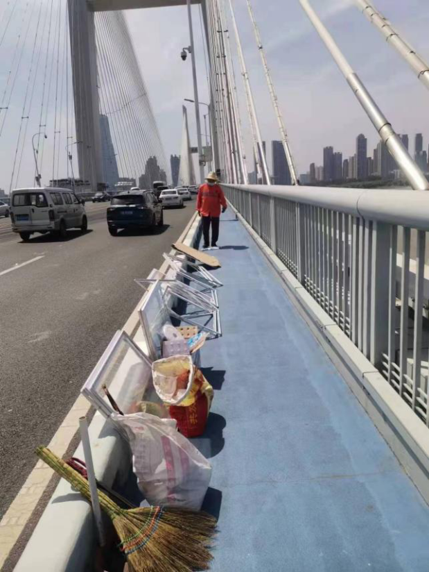 橋面環(huán)衛(wèi)工人們的工作“家當(dāng)”