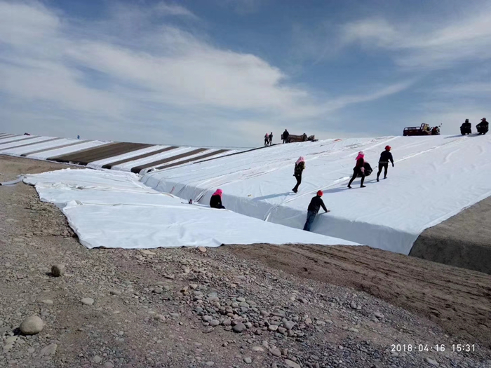 土工布作為土工膜的保護(hù)層,使保護(hù)防滲層不受損壞。為減少紫外線照射,增加抗老化性能,更好采用埋入法鋪設(shè)。材料自身的連接,防滲薄膜的連接方式可歸納為三種,即粘結(jié)法、焊接法以及硫化法,視防滲薄膜的原材料的不同而選擇,所有連接縫的抗?jié)B性能均應(yīng)進(jìn)行檢查,以防接縫連接不好而滲漏。我司有專業(yè)的施工團(tuán)隊(duì),現(xiàn)場(chǎng)施工、現(xiàn)場(chǎng)指導(dǎo)安裝。